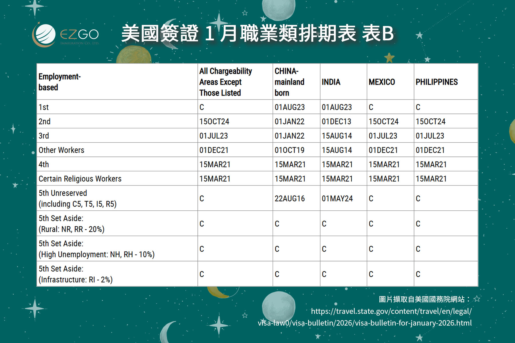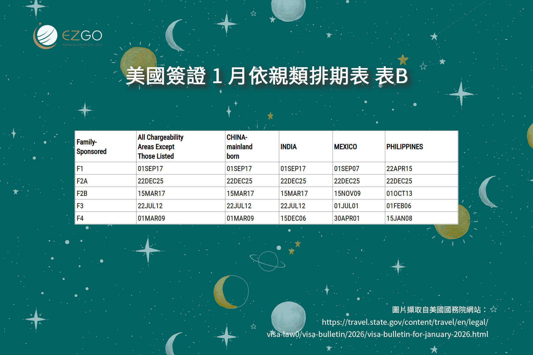 根據排期表B(Dates for Filing)審批排期,對於台灣出生的申請人來說: